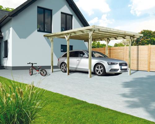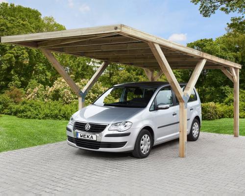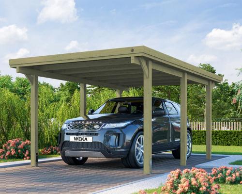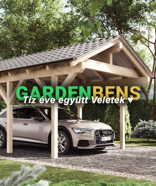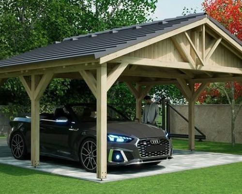 Garázs hiányában egy fából készült kocsibeálló praktikus megoldása, hogy autónkat megóvjuk a környezeti hatásoktól.